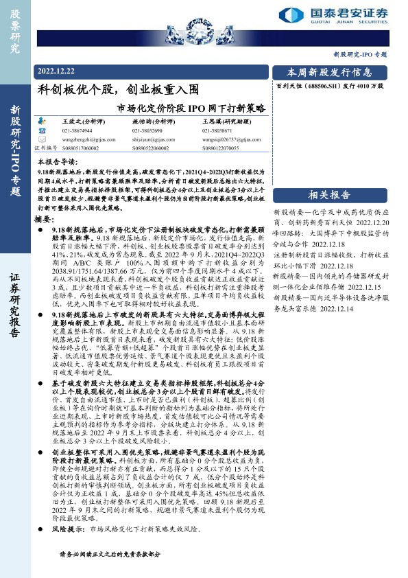 【国泰君安证券】【20221222】市场化定价阶段IPO网下打新策略:科创板优个股,创业板重入围-25页