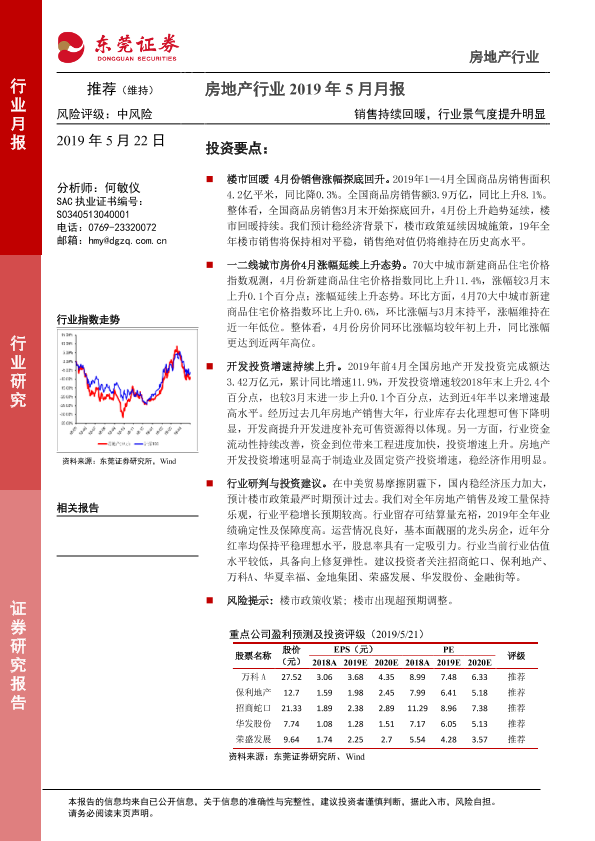 【东莞证券】【20190522】房地产行业2019年5月月报:销售持续回暖,行业景气度提升明显-11页