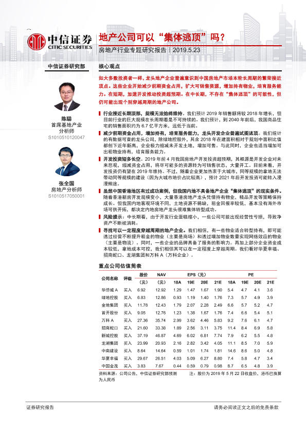 【中信证券】【20190523】地产公司可以“集体逃顶”吗?-15页