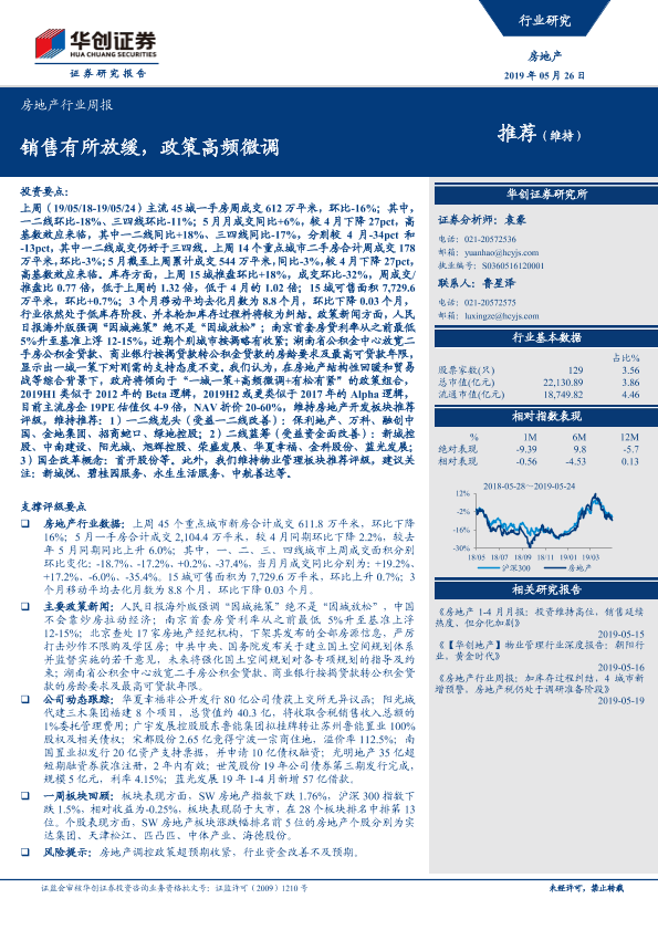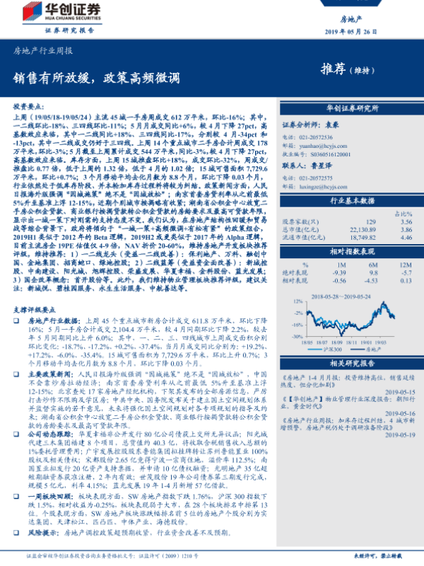 【华创证券】【20190526】房地产行业周报:销售有所放缓,政策高频微调-23页
