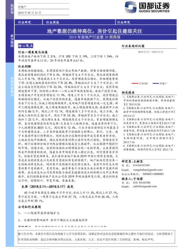 【国都证券】【20190521】2019年房地产行业第20周周报:地产数据仍维持高位,房价引起住建部关注-18页