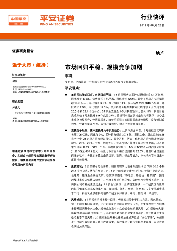 【平安证券】【20190602】地产行业快评:市场回归平稳,规模竞争加剧-4页
