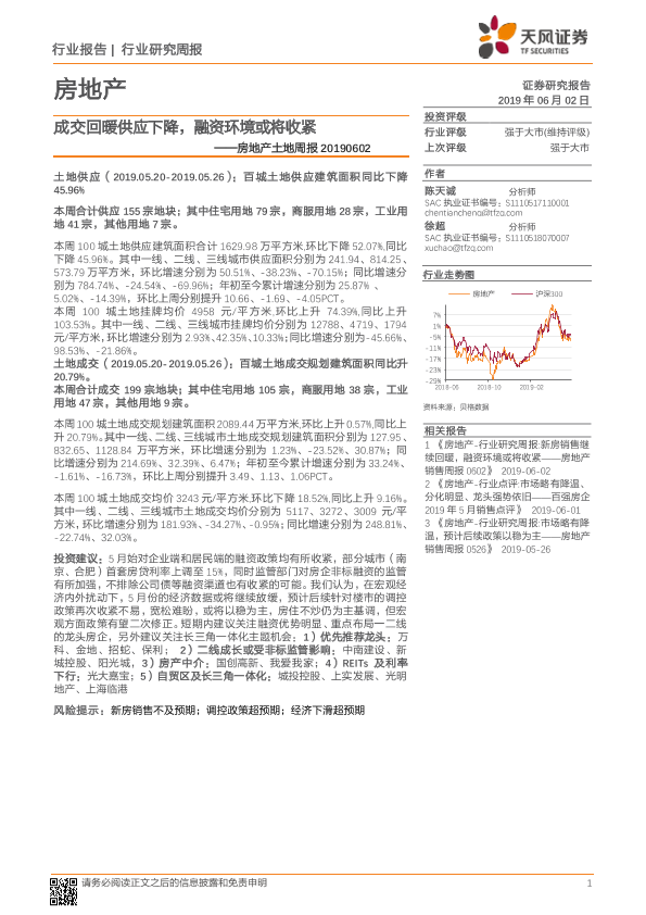 【天风证券】【20190602】成交回暖供应下降,融资环境或将收紧-8页