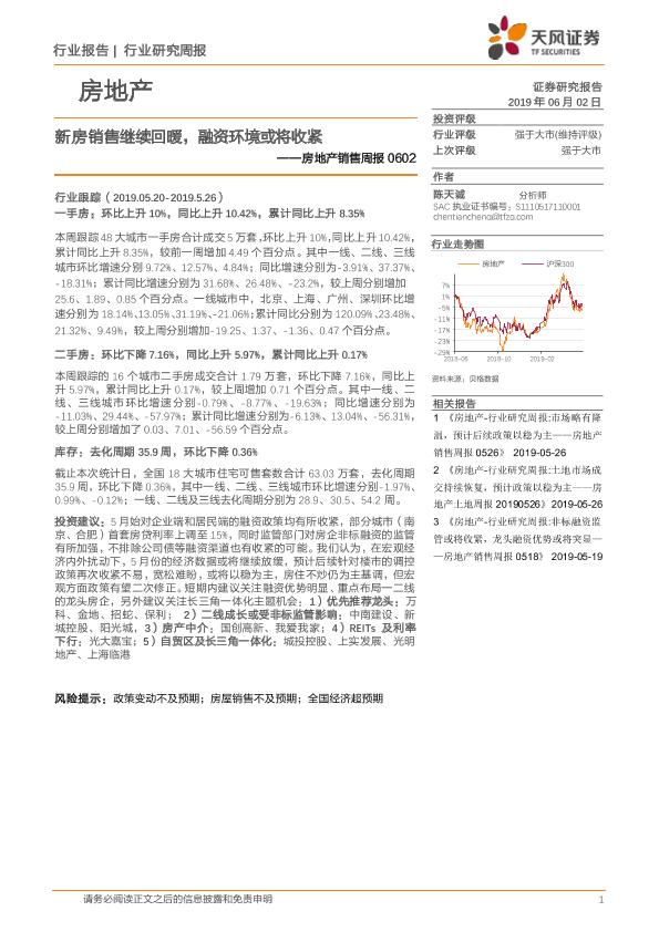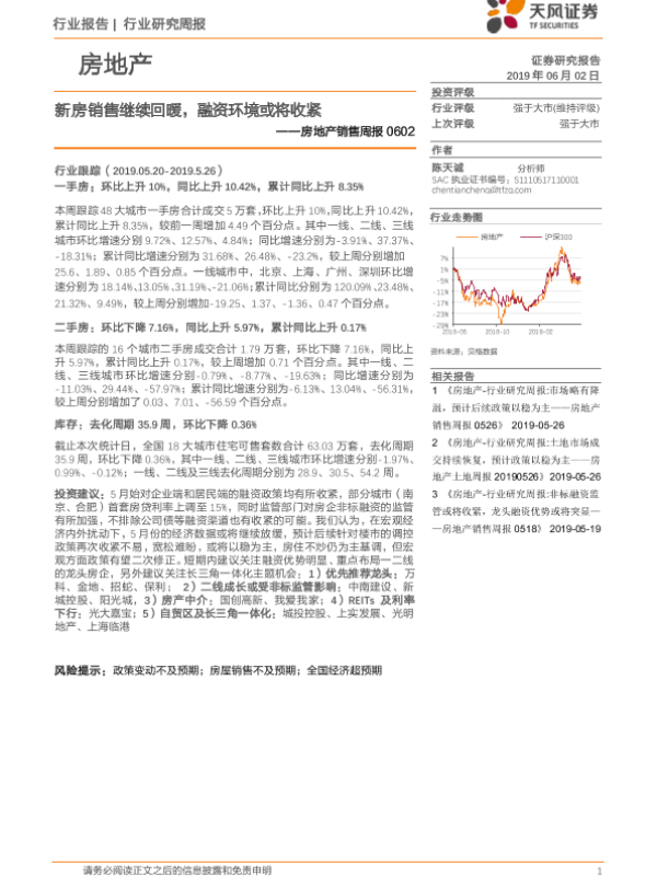 【天风证券】【20190602】新房销售继续回暖,融资环境或将收紧-13页