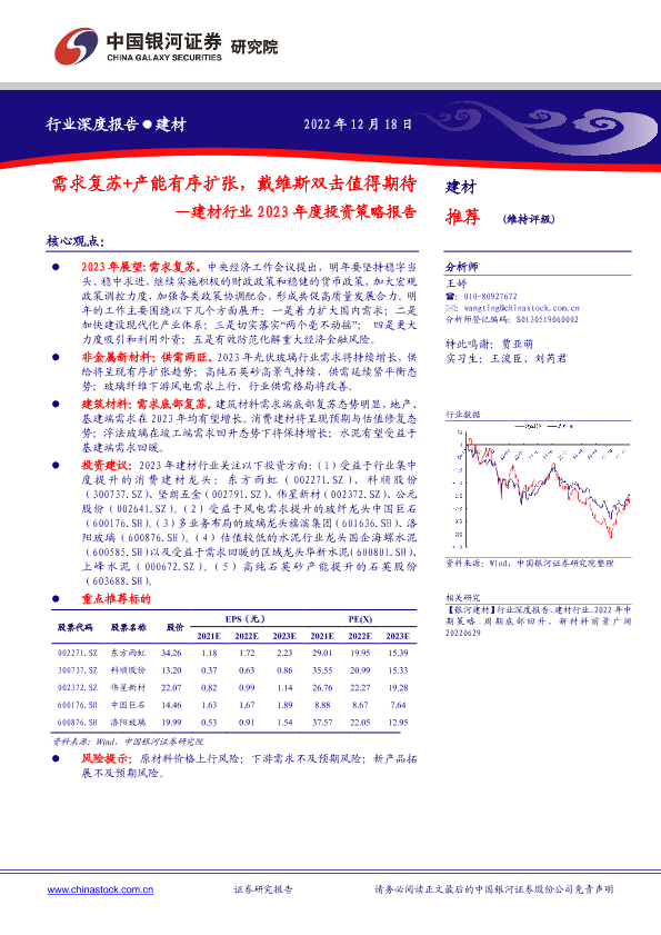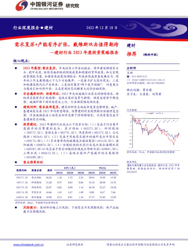 【银河证券】【20221218】建材行业2023年度投资策略报告:需求复苏+产能有序扩张,戴维斯双击值得期待-29页