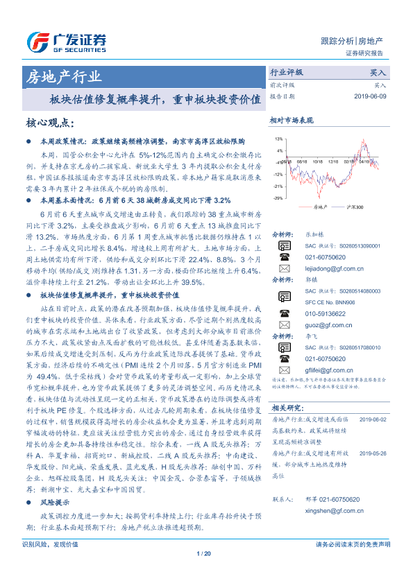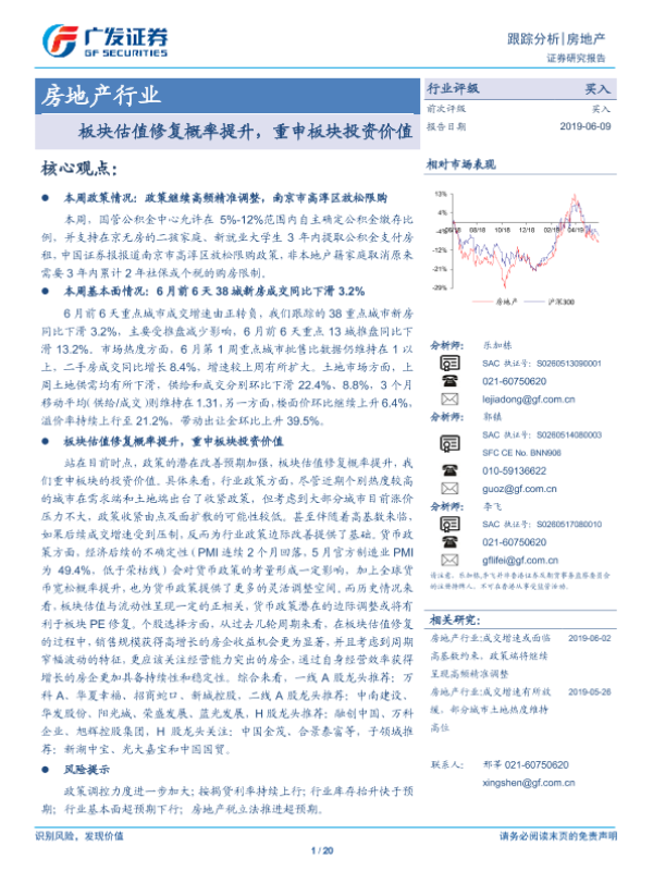 【广发证券】【20190609】房地产行业跟踪分析:板块估值修复概率提升,重申板块投资价值-20页