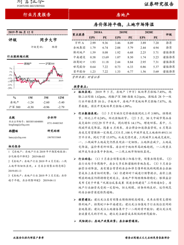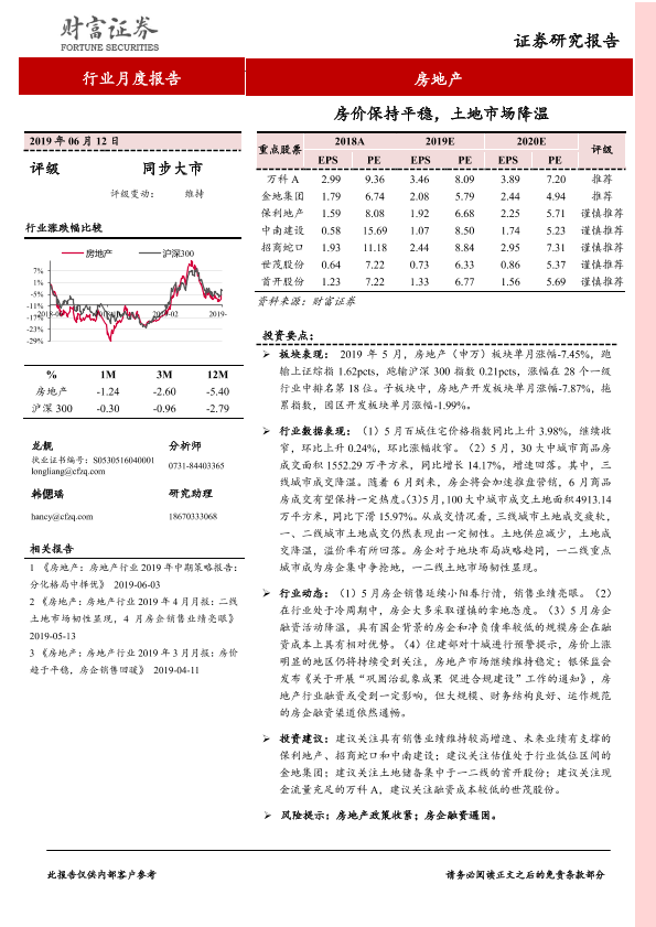 【财信证券】【20190612】房地产行业月度报告:房价保持平稳,土地市场降温-12页