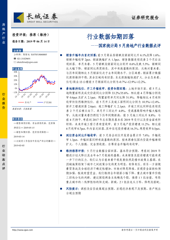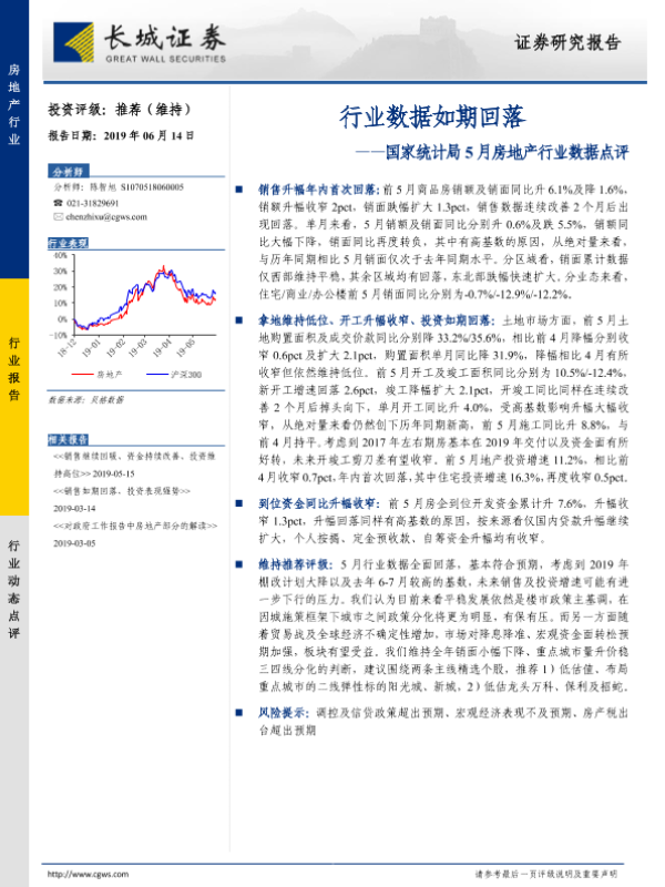 【长城证券】【20190614】国家统计局5月房地产行业数据点评:行业数据如期回落-8页