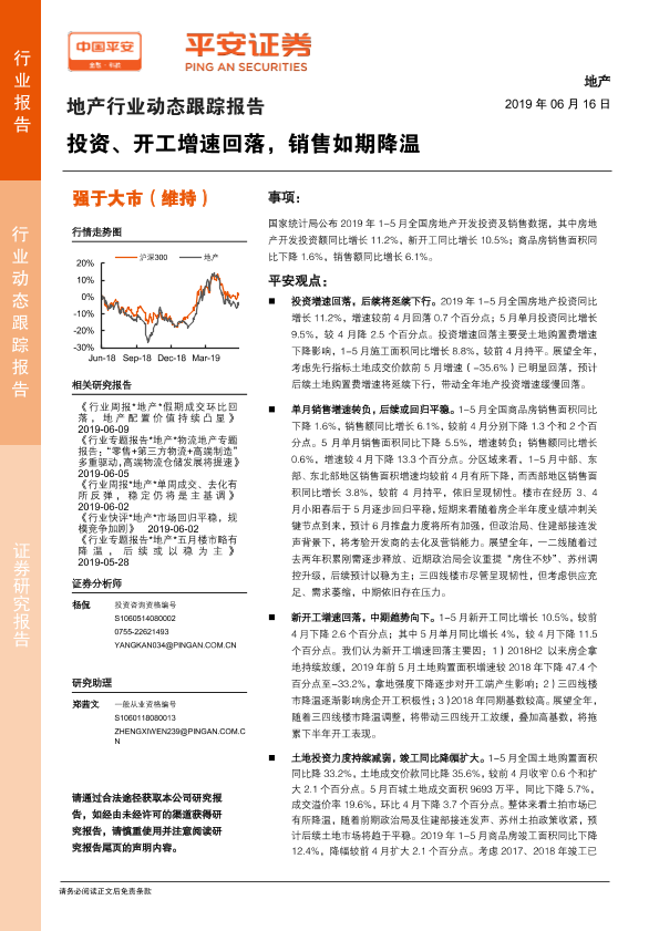 【平安证券】【20190616】地产行业动态跟踪报告:投资、开工增速回落,销售如期降温-14页