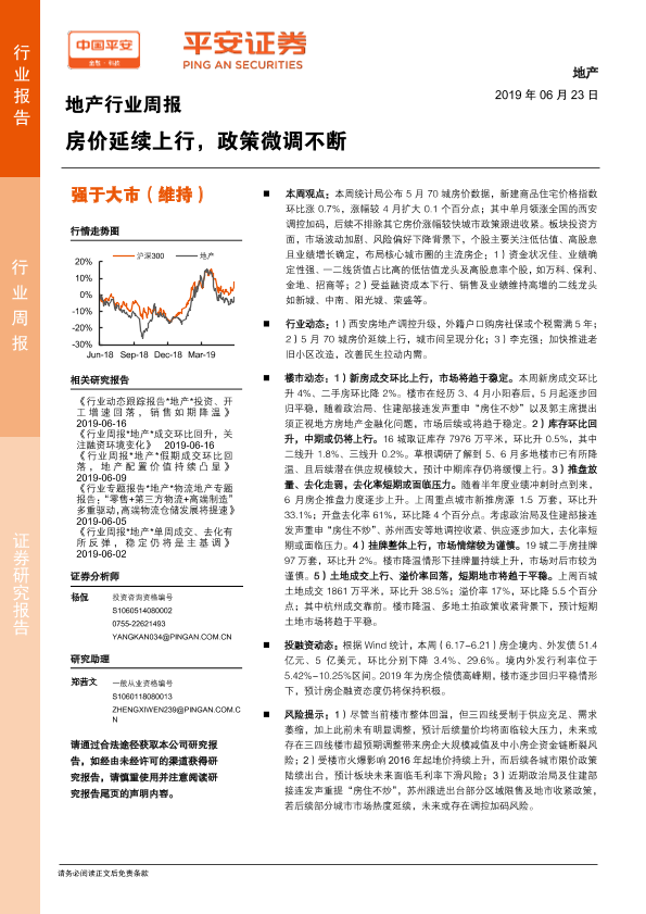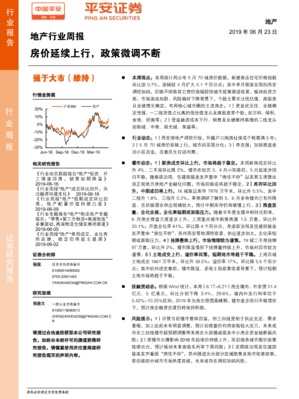 【平安证券】【20190623】地产行业周报:房价延续上行,政策微调不断-5页