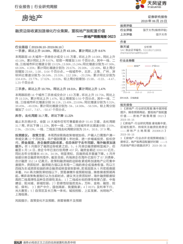 【天风证券】【20190623】房地产销售周报:融资边际收紧加速催化行业集聚,重视地产股配置价值-12页