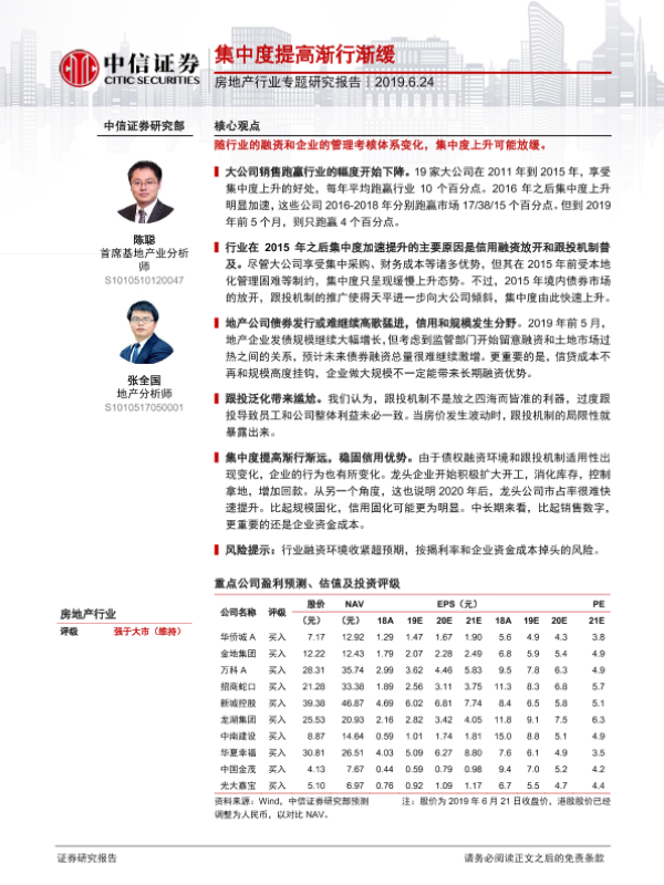 【中信证券】【20190624】房地产行业专题研究报告:集中度提高渐行渐缓-11页