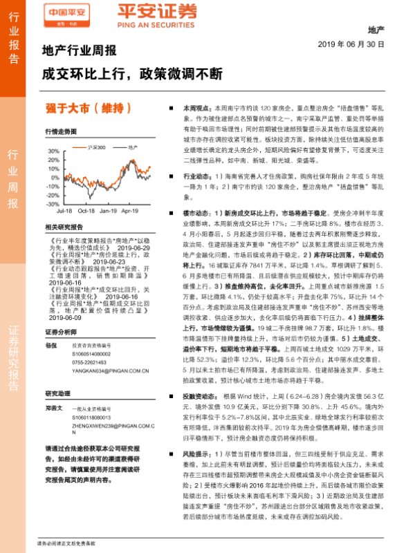 【平安证券】【20190630】地产行业周报:成交环比上行,政策微调不断-5页