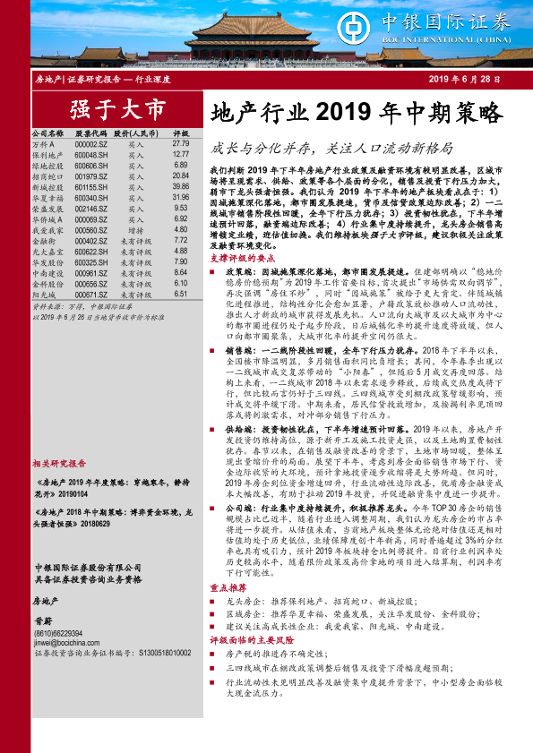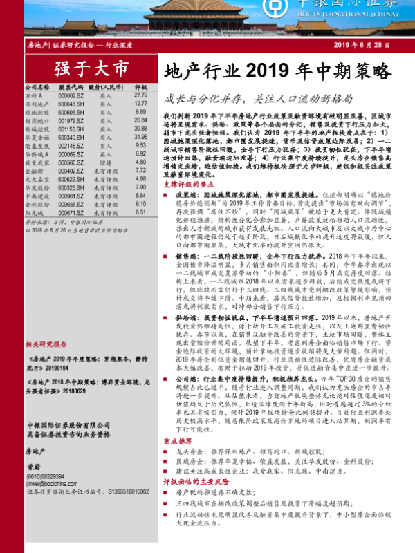 【中银证券】【20190628】地产行业2019年中期策略:成长与分化并存,关注人口流动新格局-39页