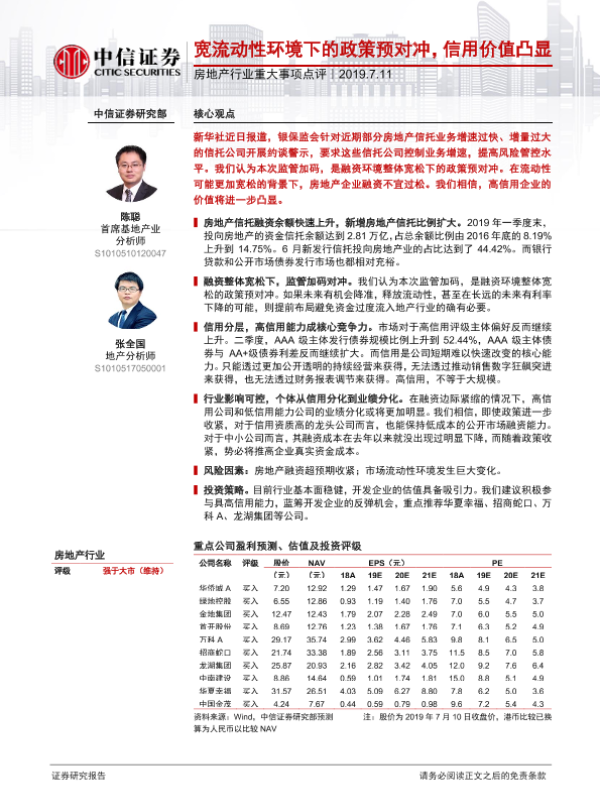 信用分层 市场预测 房地产信托 政策调控 融资环境
