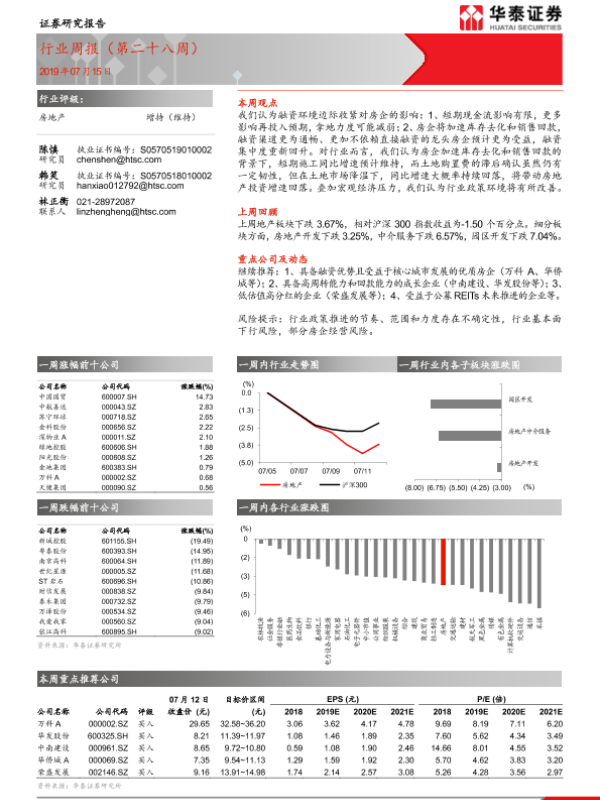 【华泰证券】【20190715】房地产行业周报(第二十八周)-15页