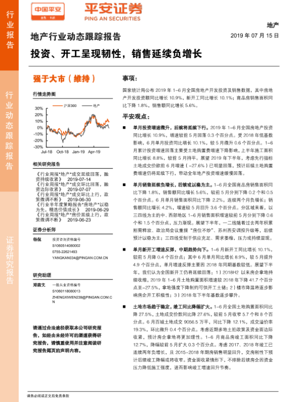 【平安证券】【20190715】地产行业动态跟踪报告:投资、开工呈现韧性,销售延续负增长-11页