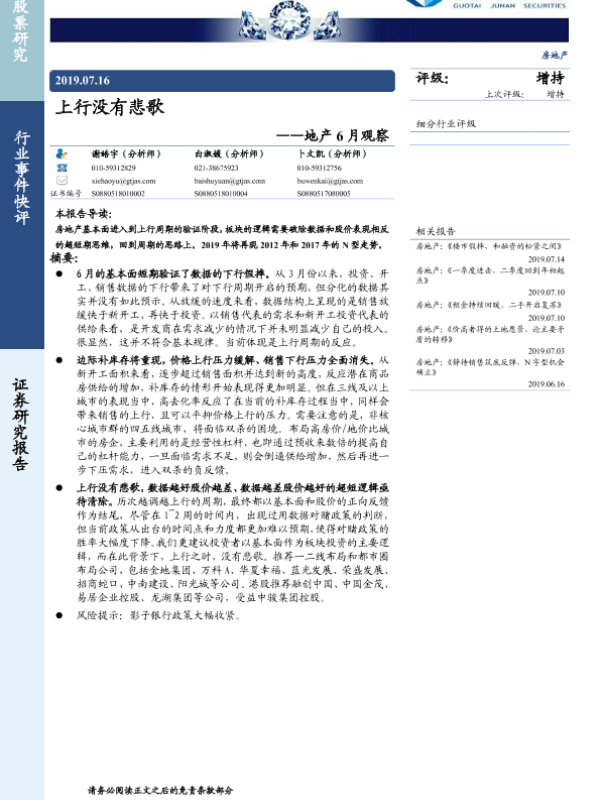 【国泰君安证券】【20190716】地产6月观察:上行没有悲歌-3页