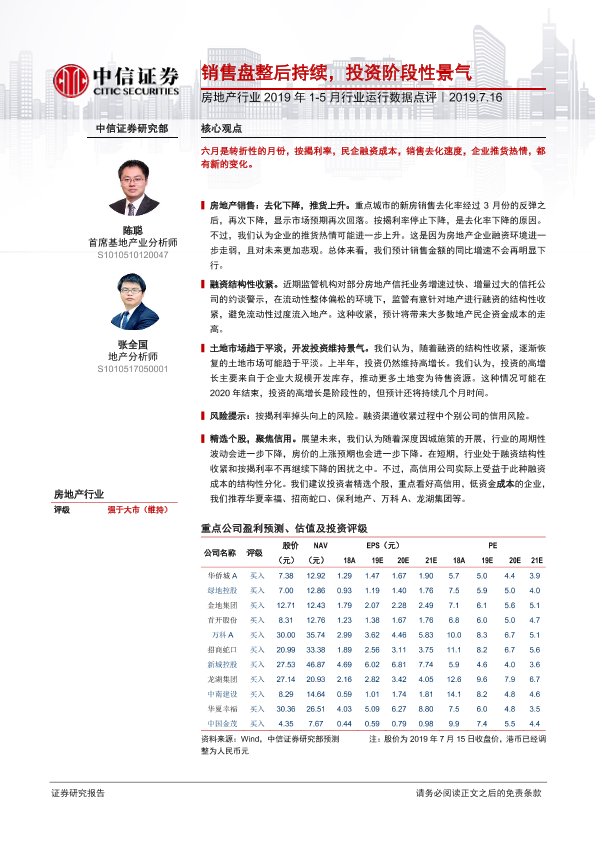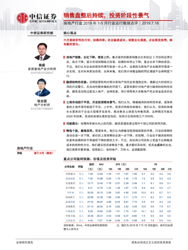【中信证券】【20190716】房地产行业2019年1-5月行业运行数据点评-8页