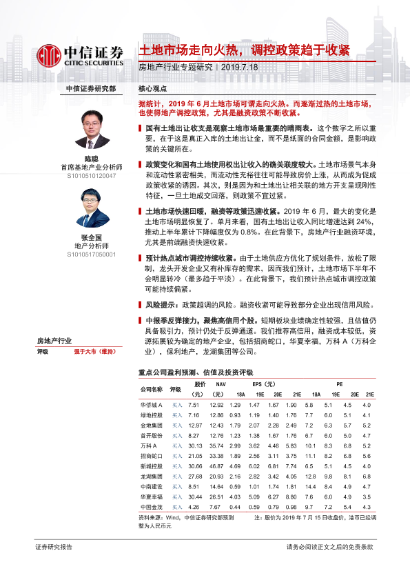 【中信证券】【20190718】土地市场走向火热,调控政策趋于收紧-9页