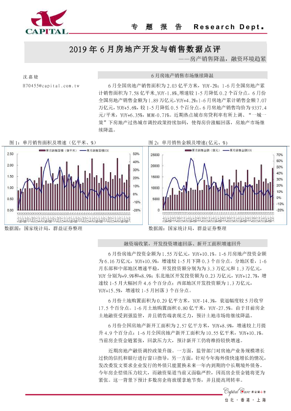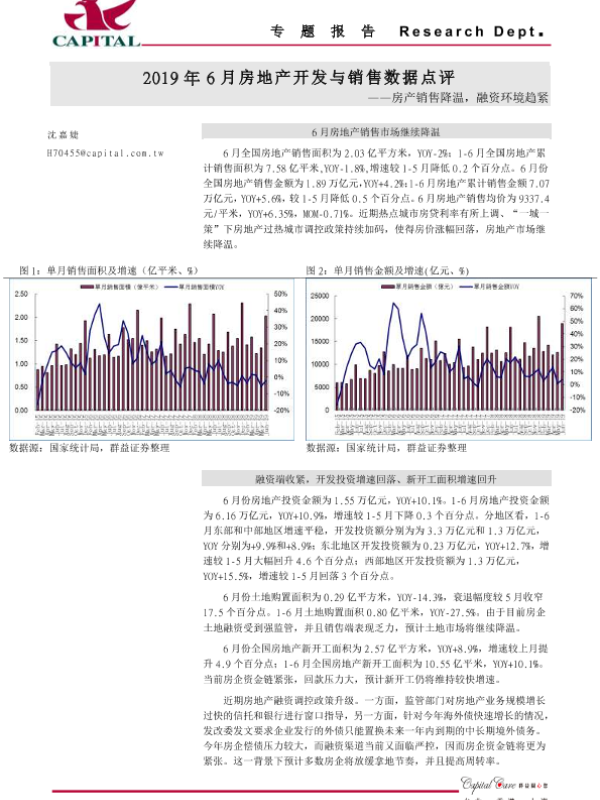 【群益证券】【20190718】2019年6月房地产开发与销售数据点评-2页