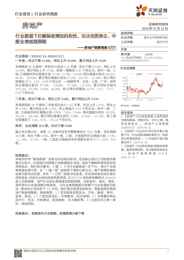 【天风证券】【20190721】行业数据下行解除政策加码担忧,关注优质房企,中报业绩或超预期-12页