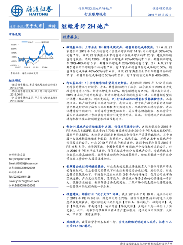 【海通证券】【20190722】房地产行业跟踪报告:继续看好2H地产-6页