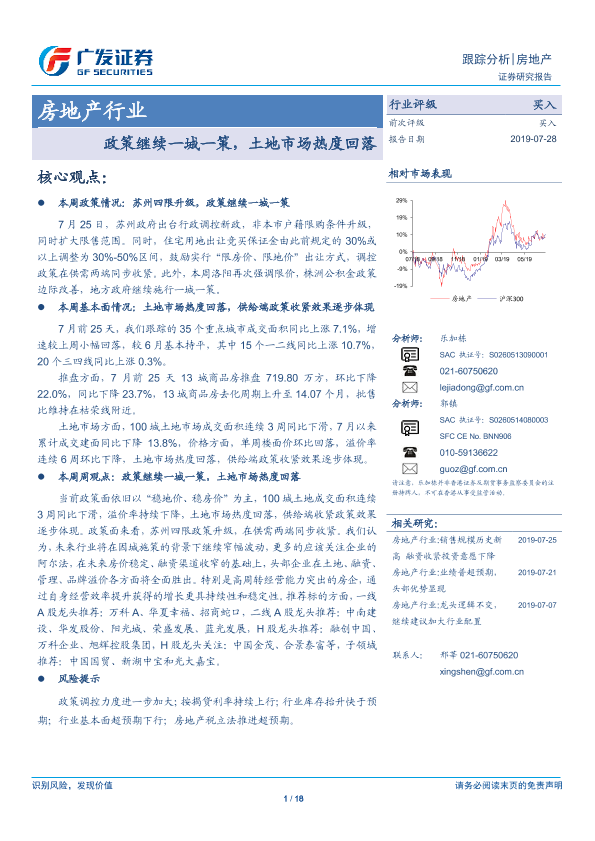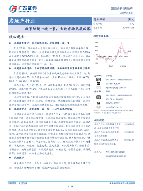 【广发证券】【20190728】房地产行业:政策继续一城一策,土地市场热度回落-18页