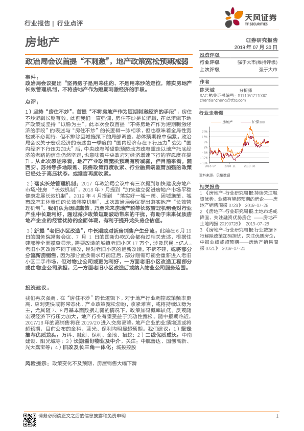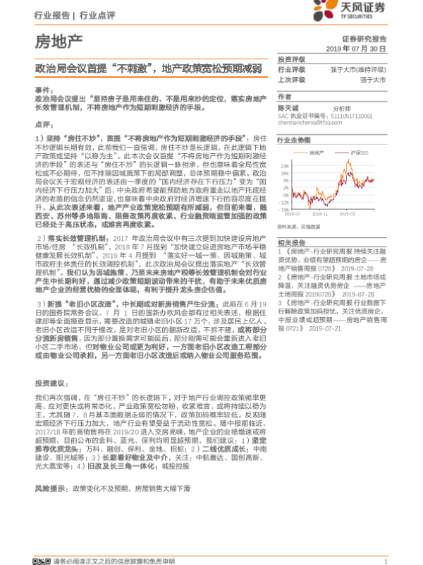 【天风证券】【20190730】房地产行业点评:政治局会议首提“不刺激”,地产政策宽松预期减弱-3页
