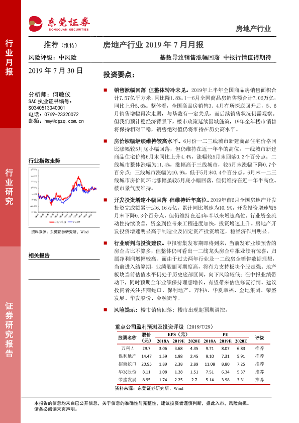 【东莞证券】【20190730】房地产行业2019年7月月报:基数导致销售涨幅回落 中报行情值得期待-12页