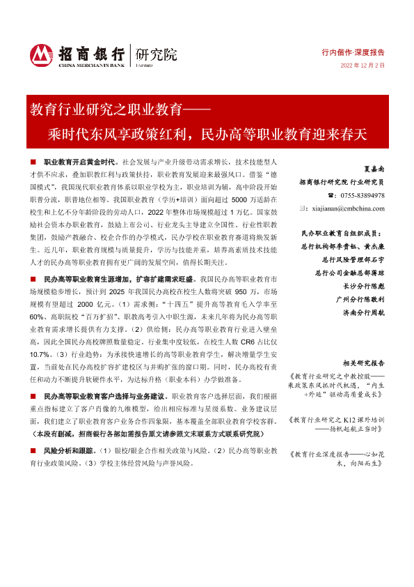 【招商银行】【20221202】教育行业研究之职业教育:乘时代东风享政策红利,民办高等职业教育迎来春天-23页