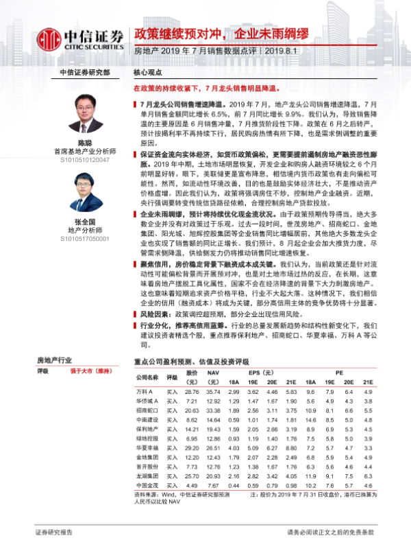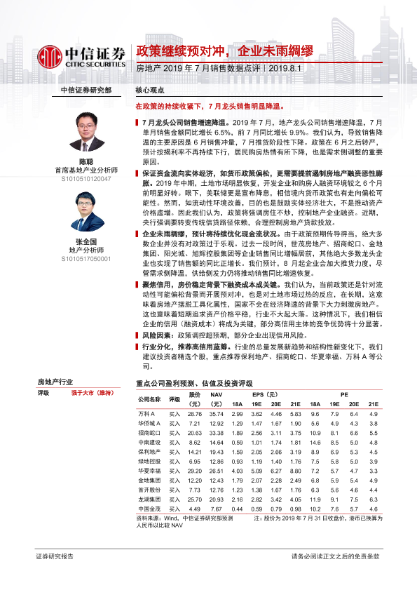 【中信证券】【20190801】房地产2019年7月销售数据点评:政策继续预对冲,企业未雨绸缪-10页