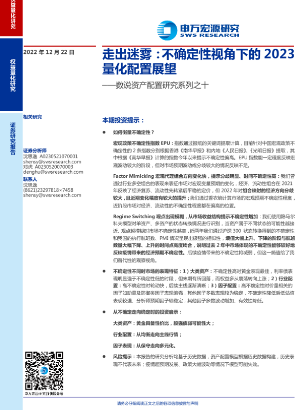 【申万宏源】【20221222】数说资产配置研究系列之十:走出迷雾,不确定性视角下的2023量化配置展望-26页