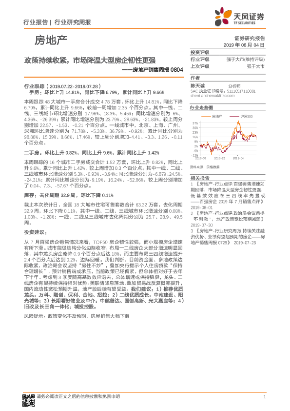 【天风证券】【20190804】政策持续收紧,市场降温大型房企韧性更强-11页