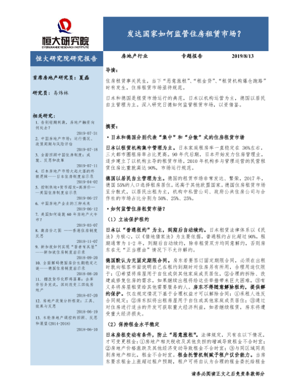 【恒大研究院】【20190813】发达国家如何监管住房租赁市场-14页