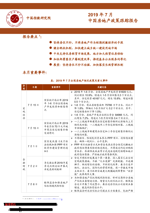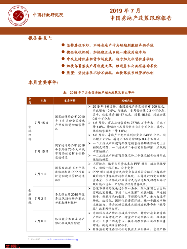 【中指研究院】【20190813】2019年7月中国房地产政策跟踪报告-29页