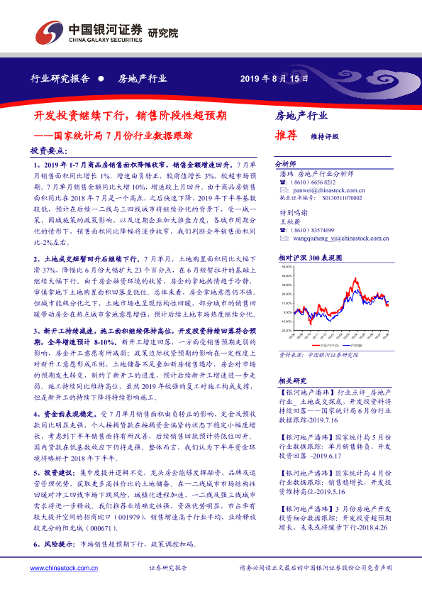【银河证券】【20190815】开发投资继续下行,销售阶段性超预期-11页