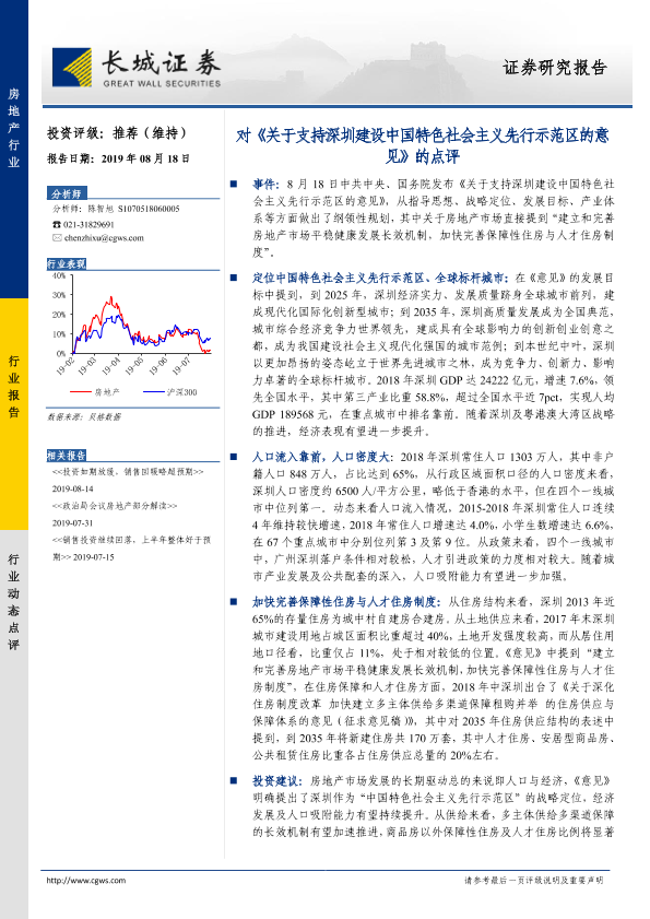 【长城证券】【20190818】对《关于支持深圳建设中国特色社会主义先行示范区的意见》的点评-7页