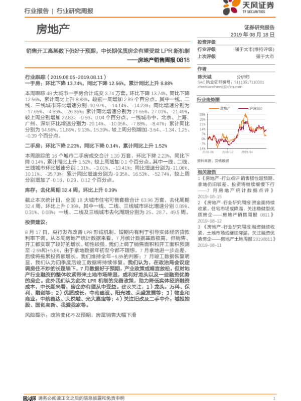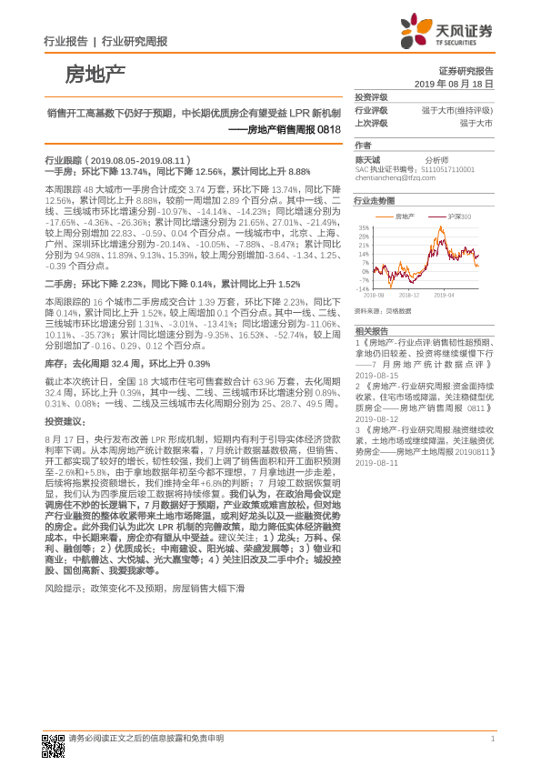 【天风证券】【20190818】销售开工高基数下仍好于预期,中长期优质房企有望受益LPR新机制-12页