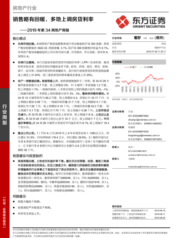 【东方证券】【20190825】2019年第34周地产周报-销售略有回暖,多地上调房贷利率-19页