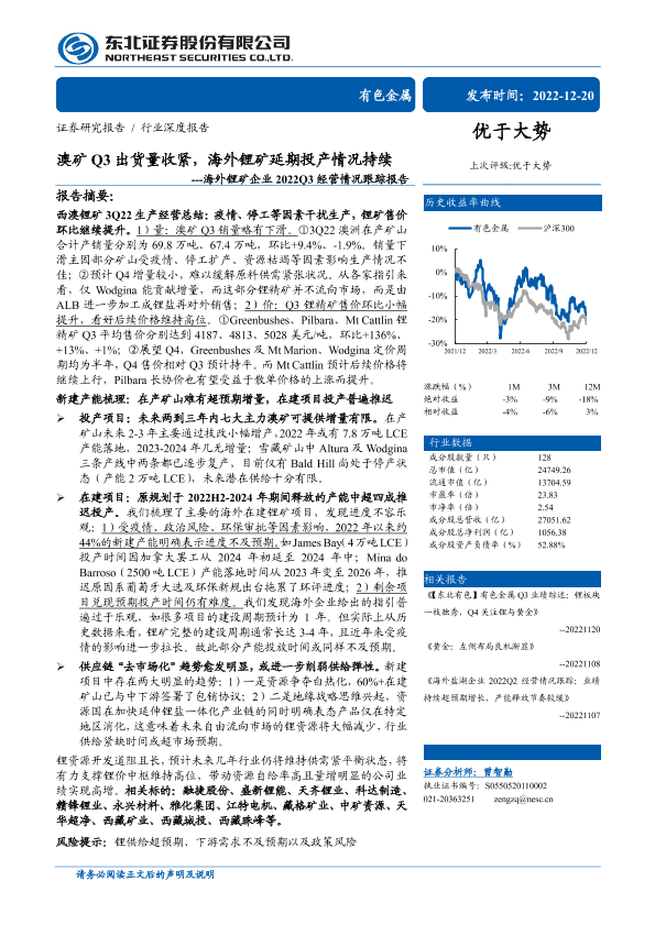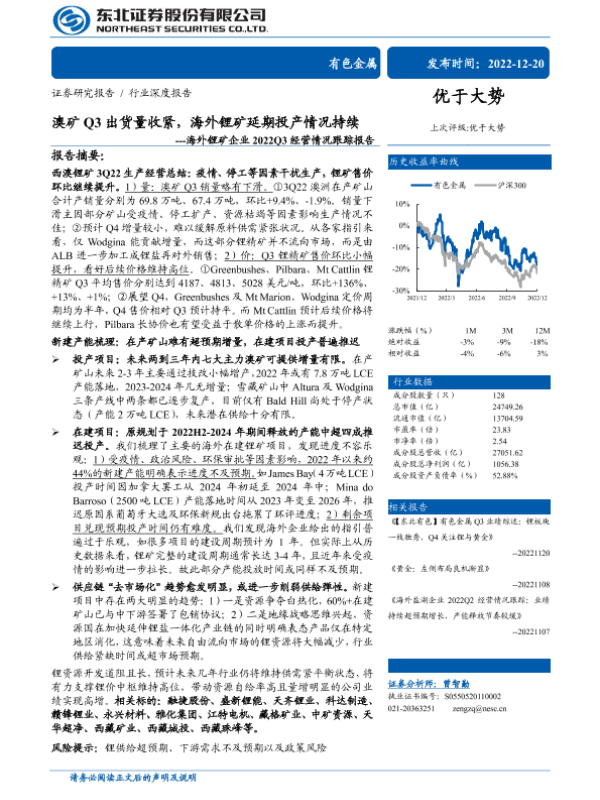 【东北证券】【20221220】澳矿Q3出货量收紧,海外锂矿延期投产情况持续-59页