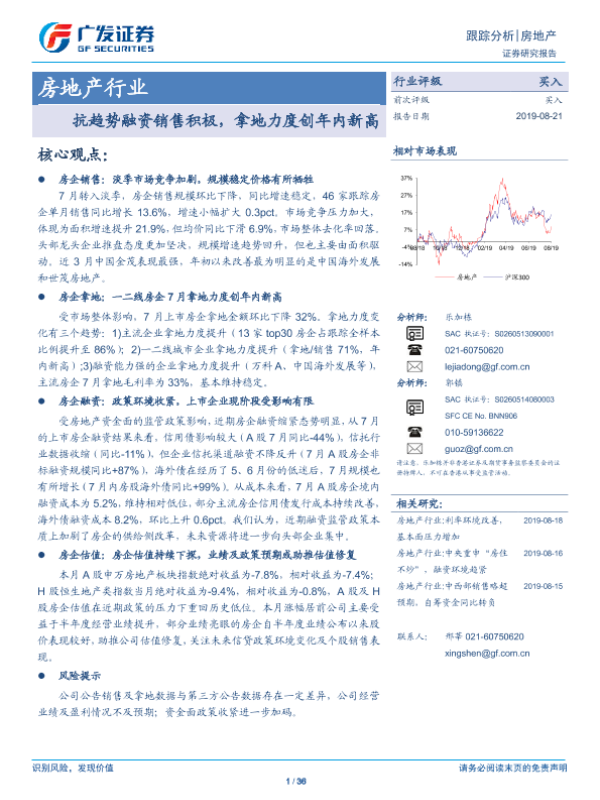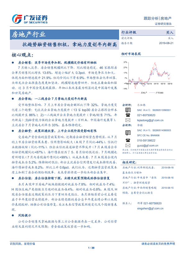 【广发证券】【20190821】房地产行业跟踪分析:抗趋势融资销售积极,拿地力度创年内新高-36页