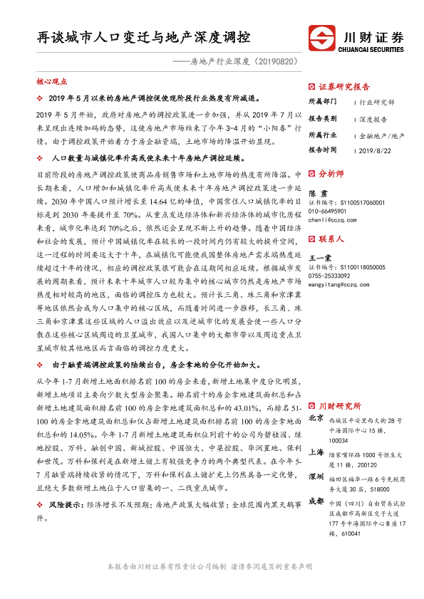 【川财证券】【20190822】再谈城市人口变迁与地产深度调控-29页