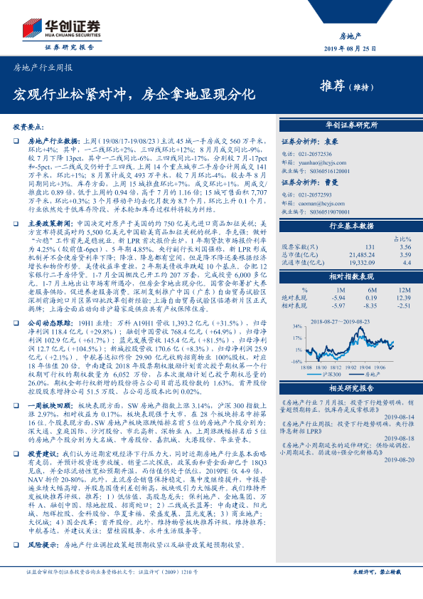 【华创证券】【20190825】房地产行业周报:宏观行业松紧对冲,房企拿地显现分化-23页