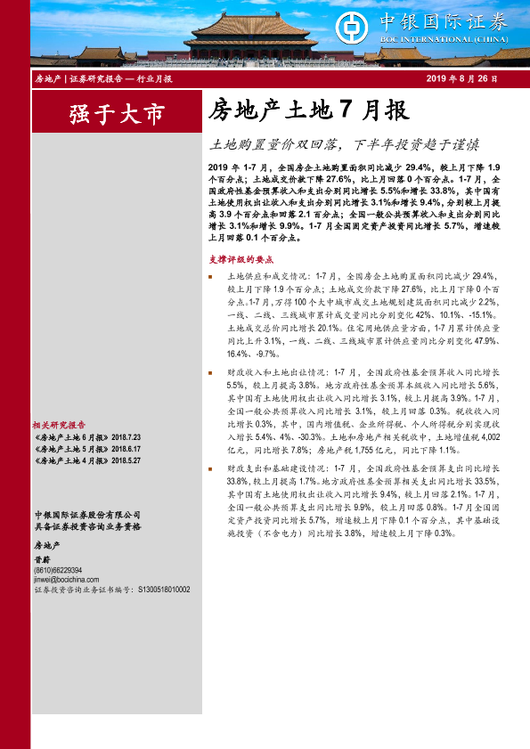 【中银证券】【20190826】土地购置量价双回落,下半年投资趋于谨慎-13页