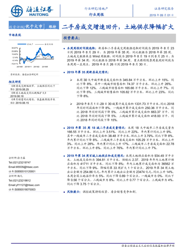 【海通证券】【20190901】房地产行业周报:二手房成交增速回升,土地供求降幅扩大-6页