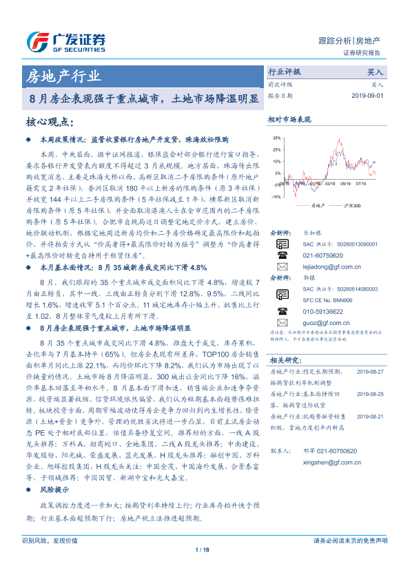 【广发证券】【20190901】8月房企表现强于重点城市,土地市场降温明显-18页