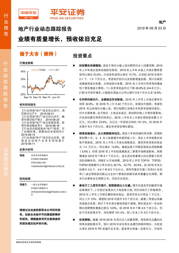 【平安证券】【20190903】地产行业动态跟踪报告:业绩有质量增长,预收依旧充足-18页