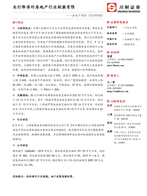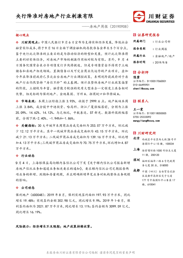 【川财证券】【20190908】央行降准对房地产行业刺激有限-10页