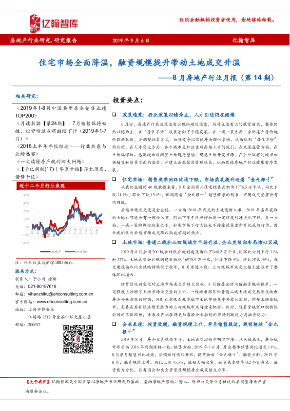 【亿翰智库】【20190906】8月房地产行业月报:住宅市场全面降温,融资规模提升带动土地成交升温-19页
